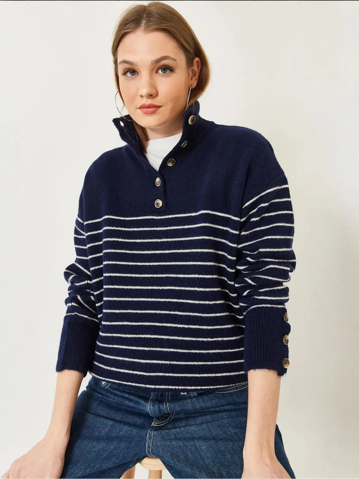 Specificaties: Bianco Lucci Trui donkerblauw / wit