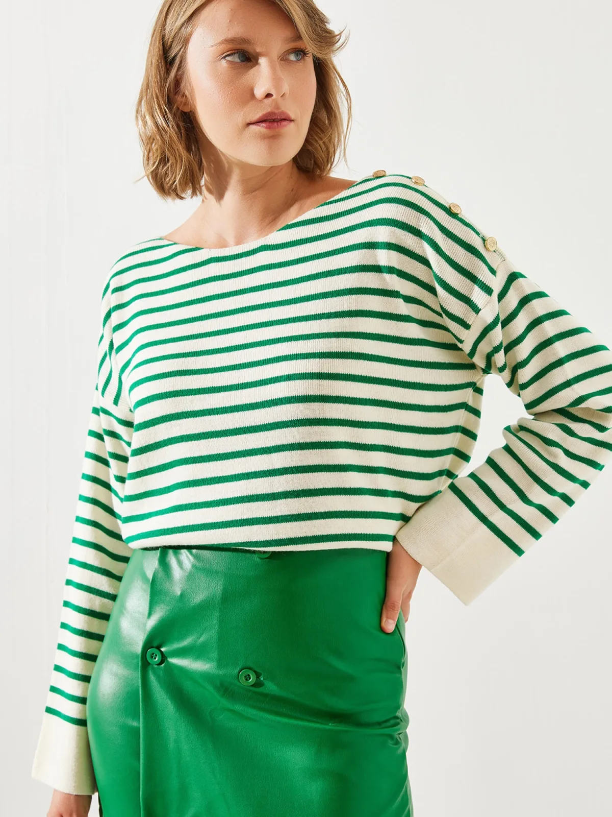 Design: Rechte zoom, Overcut schouder; Materiaal: Knitwear; Halstype: Ronde hals; Motief: Gestreept; Extra's: All-over patroon, Met textuur; Pasvorm: Losse pasvorm; Armlengte: Lange mouw; Lengte: Normale lengte