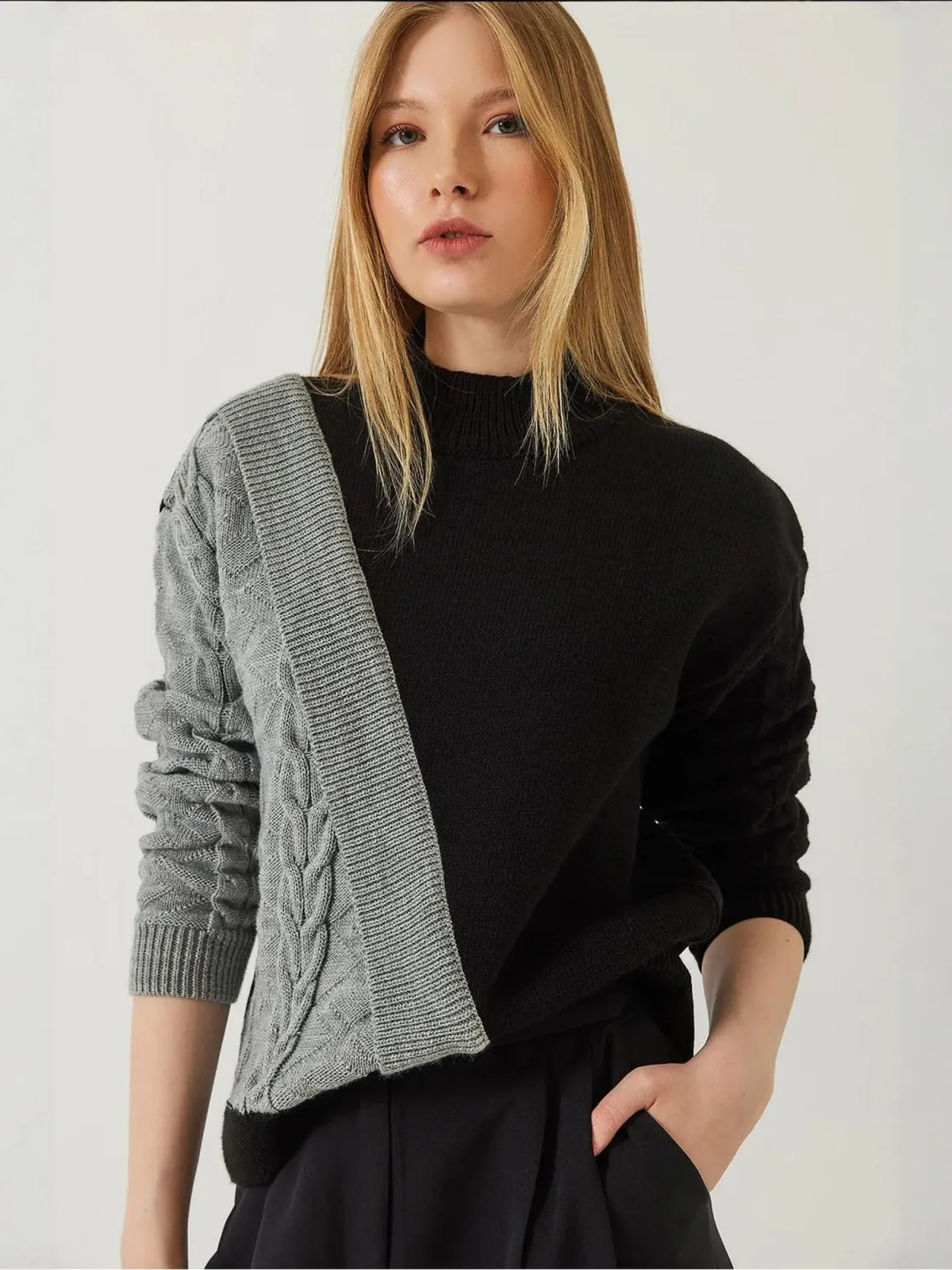 Design: Geribbelde kraag, Geribd ceintuurtje; Materiaal: Knitwear; Halstype: Opstaande kraag; Motief: Color-Blocking; Extra's: Met textuur, Voelt zacht aan; Pasvorm: Losse pasvorm; Armlengte: Lange mouw; Lengte: Normale lengte