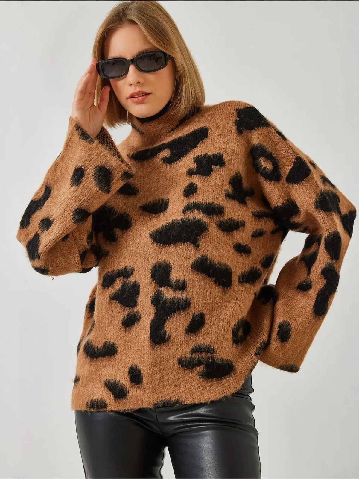 Design: Overcut schouder; Materiaal: Knitwear; Halstype: Col; Motief: Dierenprint; Extra's: All-over patroon; Pasvorm: Losse pasvorm; Armlengte: Lange mouw; Lengte: Normale lengte