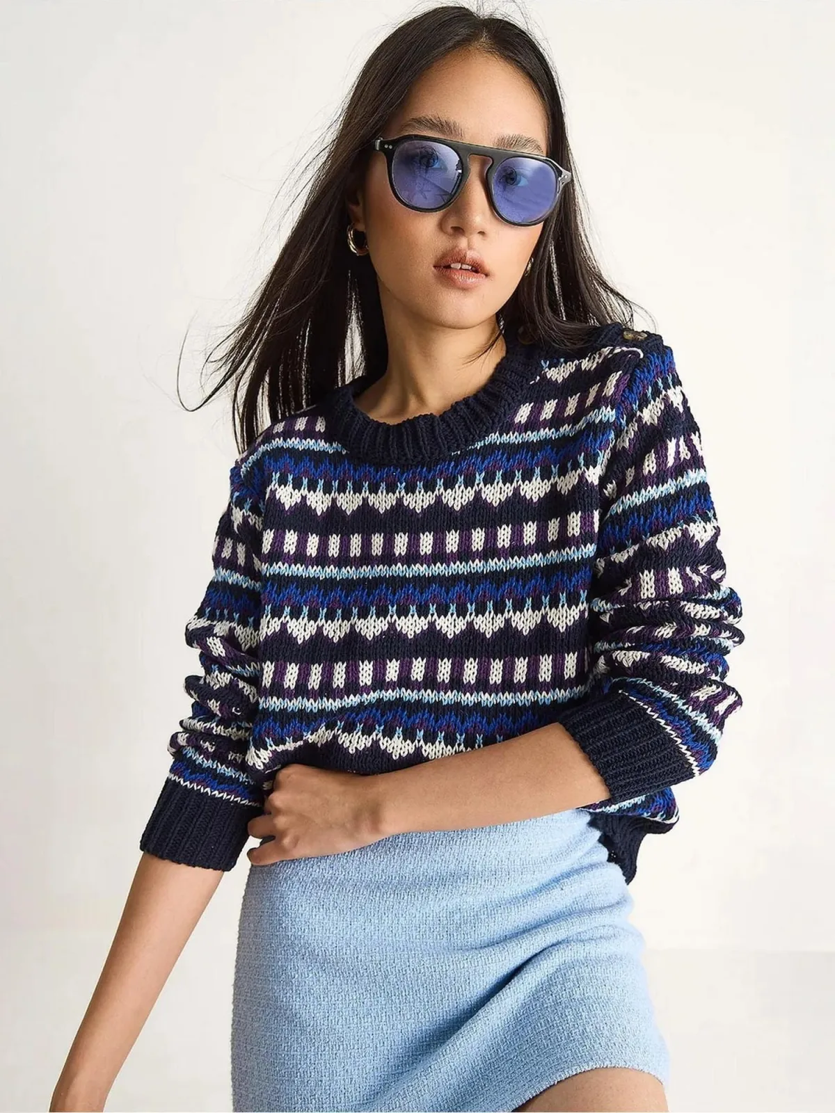 Specificaties: Bianco Lucci Trui marine / lichtblauw / lichtlila / wit