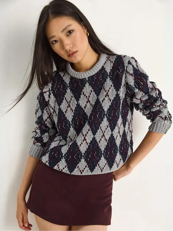 Specificaties: Bianco Lucci Trui navy / lichtgrijs / bourgogne
