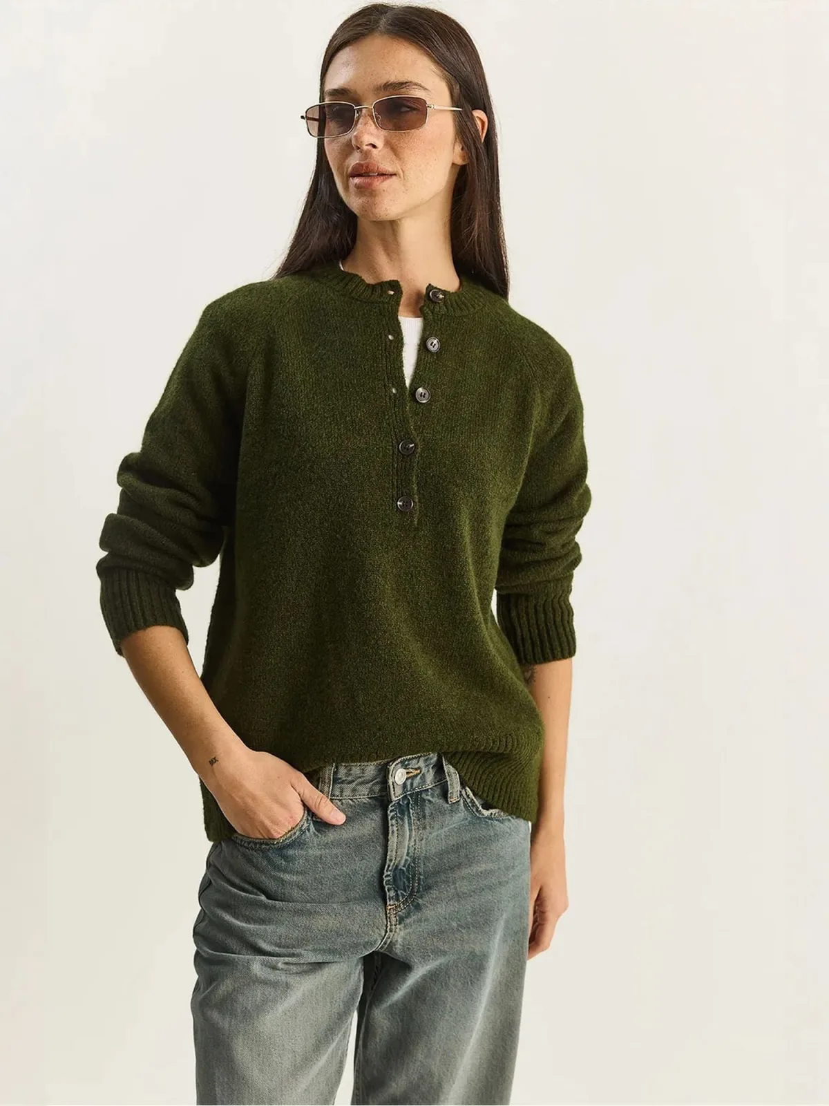Design: Knop placket; Type sluiting: Knoopsluiting; Materiaal: Knitwear; Halstype: Henley hals; Motief: Effen; Extra's: Voelt zacht aan; Pasvorm: Losse pasvorm; Armlengte: Lange mouw; Lengte: Normale lengte