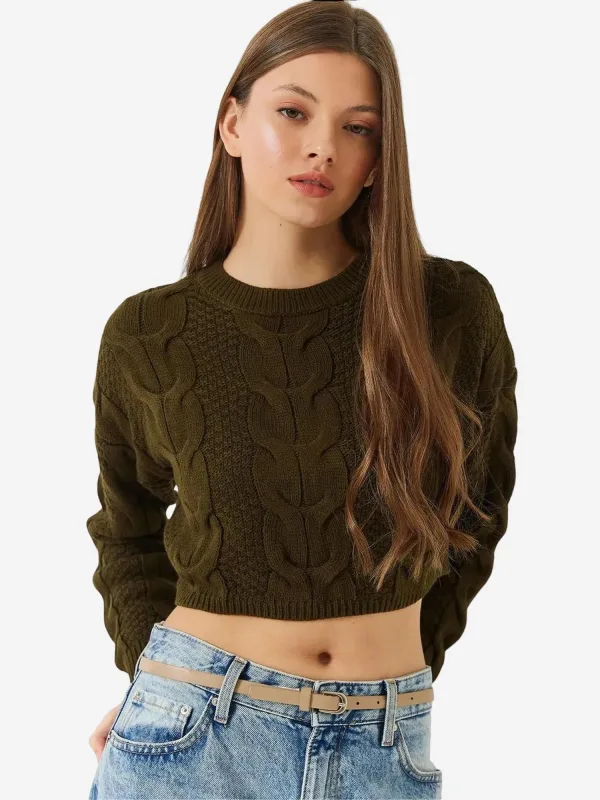 Design: Vlecht brei; Materiaal: Knitwear; Halstype: Ronde hals; Motief: Effen; Extra's: Fully fashioned; Pasvorm: Normale pasvorm; Armlengte: Lange mouw; Lengte: Korte pasvorm