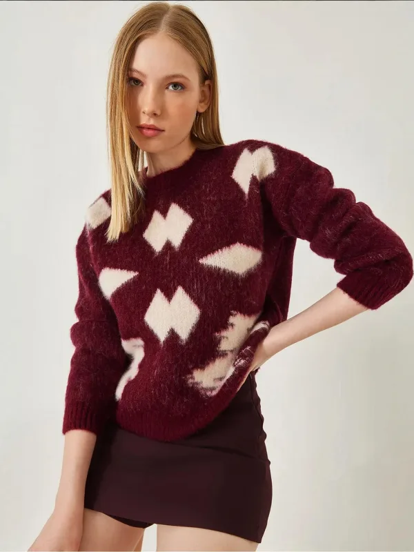 Specificaties: Bianco Lucci Trui robijnrood / natuurwit