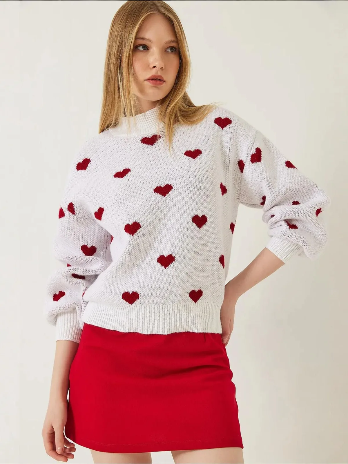 Specificaties: Bianco Lucci Trui robijnrood / wit
