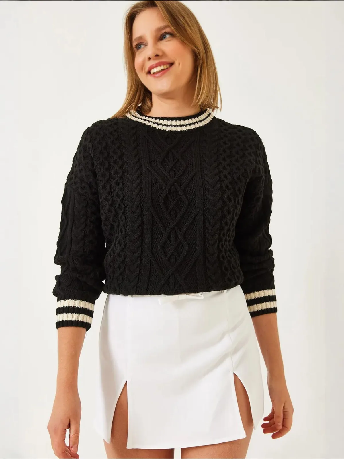 Specificaties: Bianco Lucci Trui zwart / natuurwit