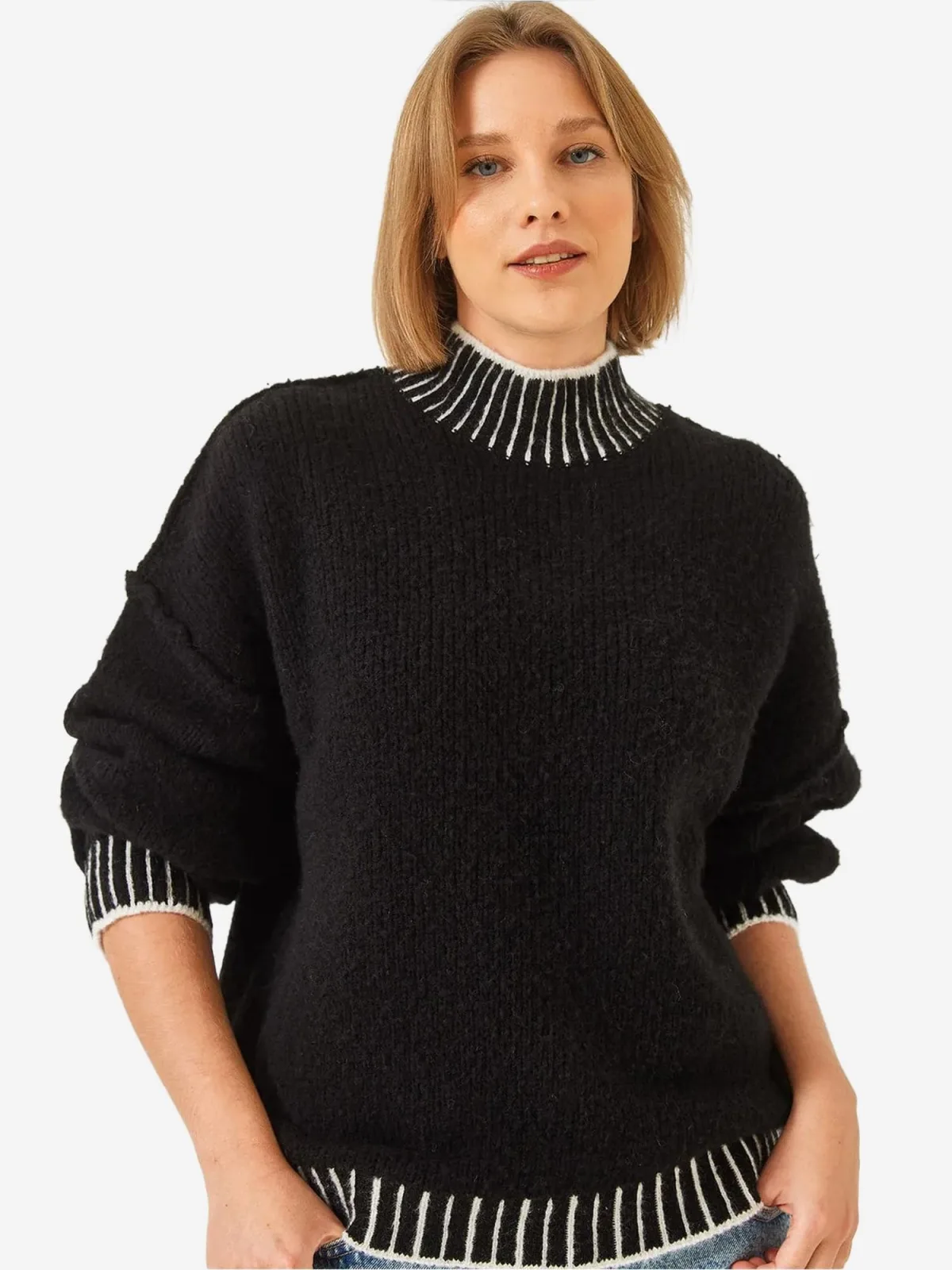 Design: Geribbelde kraag, Overcut schouder; Materiaal: Knitwear; Halstype: Opstaande kraag; Motief: Color-Blocking; Extra's: Met textuur, Voelt zacht aan; Pasvorm: Losse pasvorm; Armlengte: Lange mouw; Lengte: Normale lengte