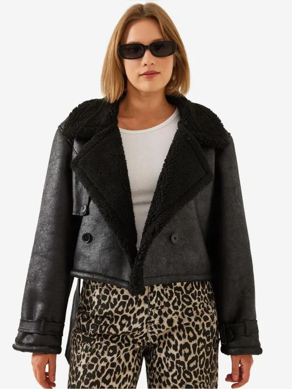 Design: Revers kraag, Overcut schouder; Type sluiting: Knoopsluiting; Voering: Licht gevoerd; Materiaal: Imitatieleder; Motief: Effen; Extra's: Op staal naden; Pasvorm: Normale pasvorm