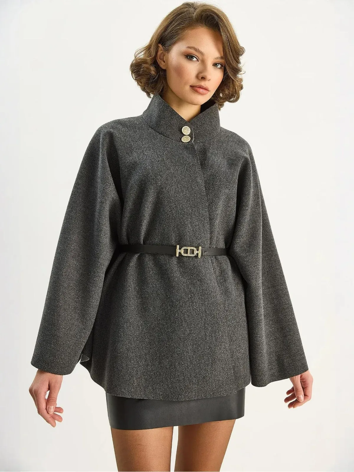 Design: Tailleriem; Type sluiting: Knoopsluiting; Voering: Licht gevoerd; Materiaal: Wol; Motief: Effen; Extra's: Op staal naden; Pasvorm: Losse pasvorm; Lengte: Korte pasvorm