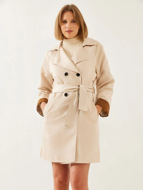 Type mantel: Trenchcoat; Design: Split, Revers kraag, Met riem, Zakken aan de zijkant; Type sluiting: Knoopsluiting; Voering: Niet gevoerd; Motief: Effen; Extra's: Op staal naden; Pasvorm: Normale pasvorm; Lengte: Normale lengte