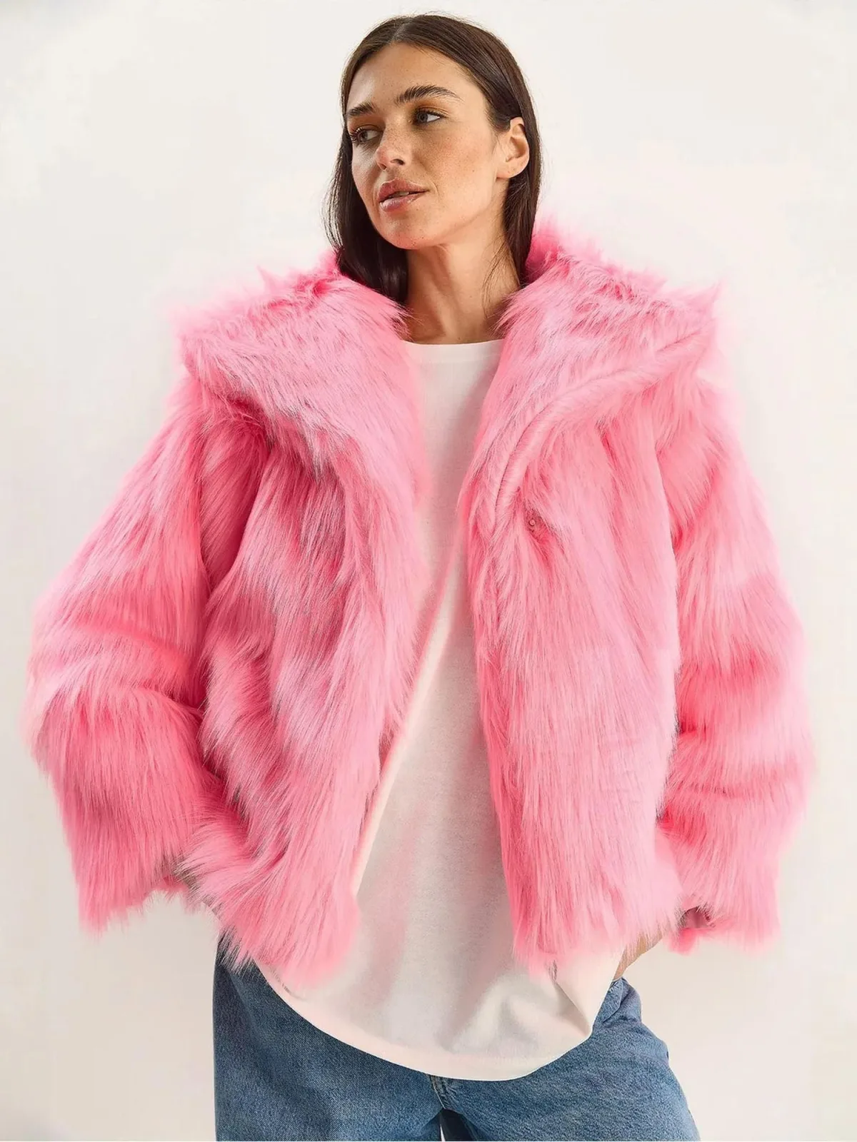 Design: Rechte zoom; Type sluiting: Drukknoop; Voering: Licht gevoerd; Materiaal: Nepbont; Motief: Effen; Extra's: Met textuur; Pasvorm: Wijde pasvorm
