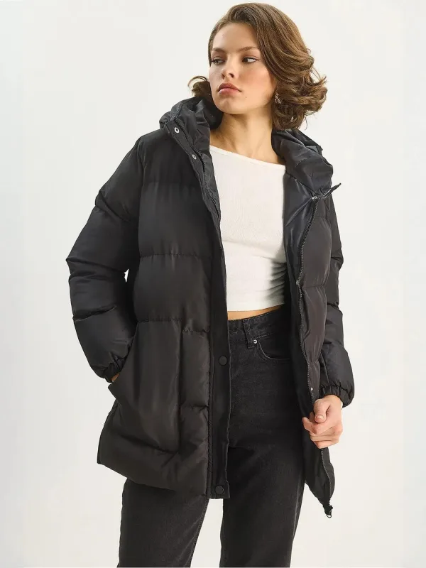 Design: Elastische taille/zoom, Capuchon met opstaande kraag, Capuchon met trekkoord, Zakken aan de zijkant; Type sluiting: Ritssluiting; Type jas: Gewatteerde jas; Voering: Warm gevoerd; Motief: Effen; Extra's: Stiksels, Op staal naden; Pasvorm: Normale pasvorm