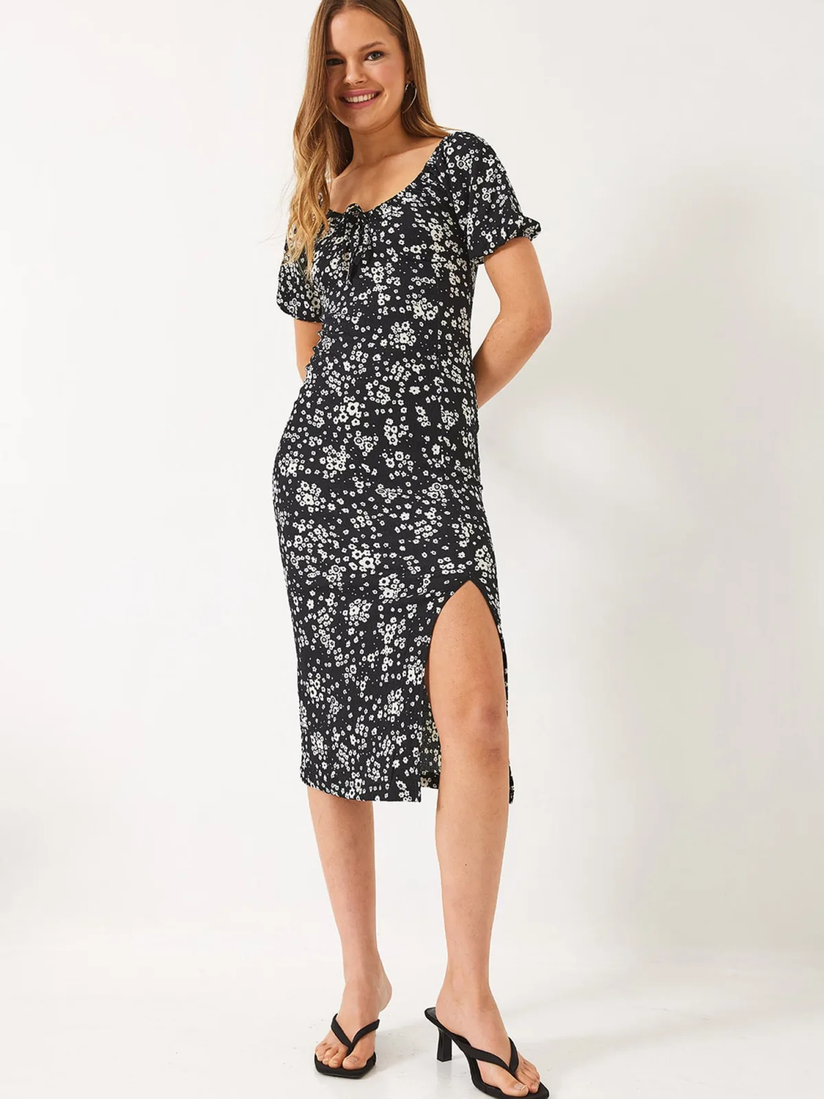 Design: Gevoerde zoom/rand, Beenopening, Om te knopen/binden; Halstype: Ronde hals; Motief: Bloemenprint; Extra's: All-over patroon, Op staal naden, Voelt zacht aan; Lengte: Knielengte; Pasvorm: Normale pasvorm; Armlengte: Kwartmouw