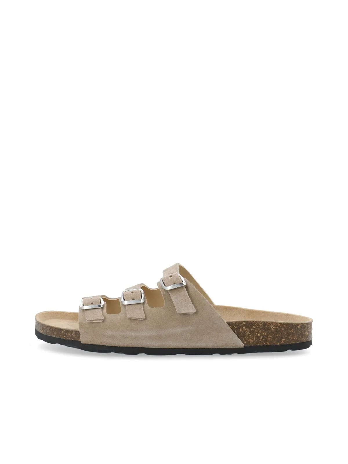 Design: Anatomisch gevormd voetbed, Profielzolen, Verstelbare riemen, Zool van kurk; Type sluiting: Slip; Materiaal: Leer; Motief: Effen; Materiaal: Suède; Schoenneus: Open toe; Extra's: Nubuck leer, Flexibele zool; Hakhoogte: Platte hak (0-3 cm)