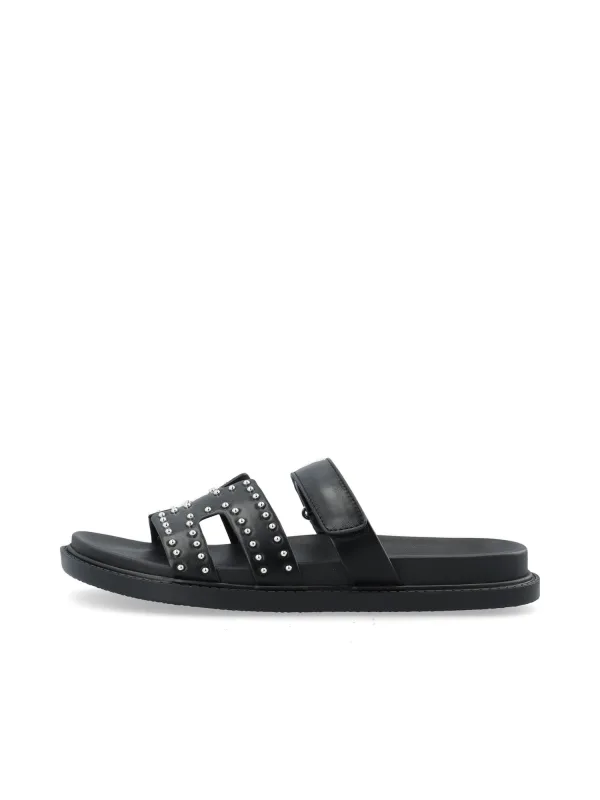 Design: Gevoerd, Klittenbandsluiting; Type sluiting: Slip; Motief: Effen; Materiaal: Imitatieleer; Schoenneus: Open toe; Extra's: Studs; Hakhoogte: Platte hak (0-3 cm)