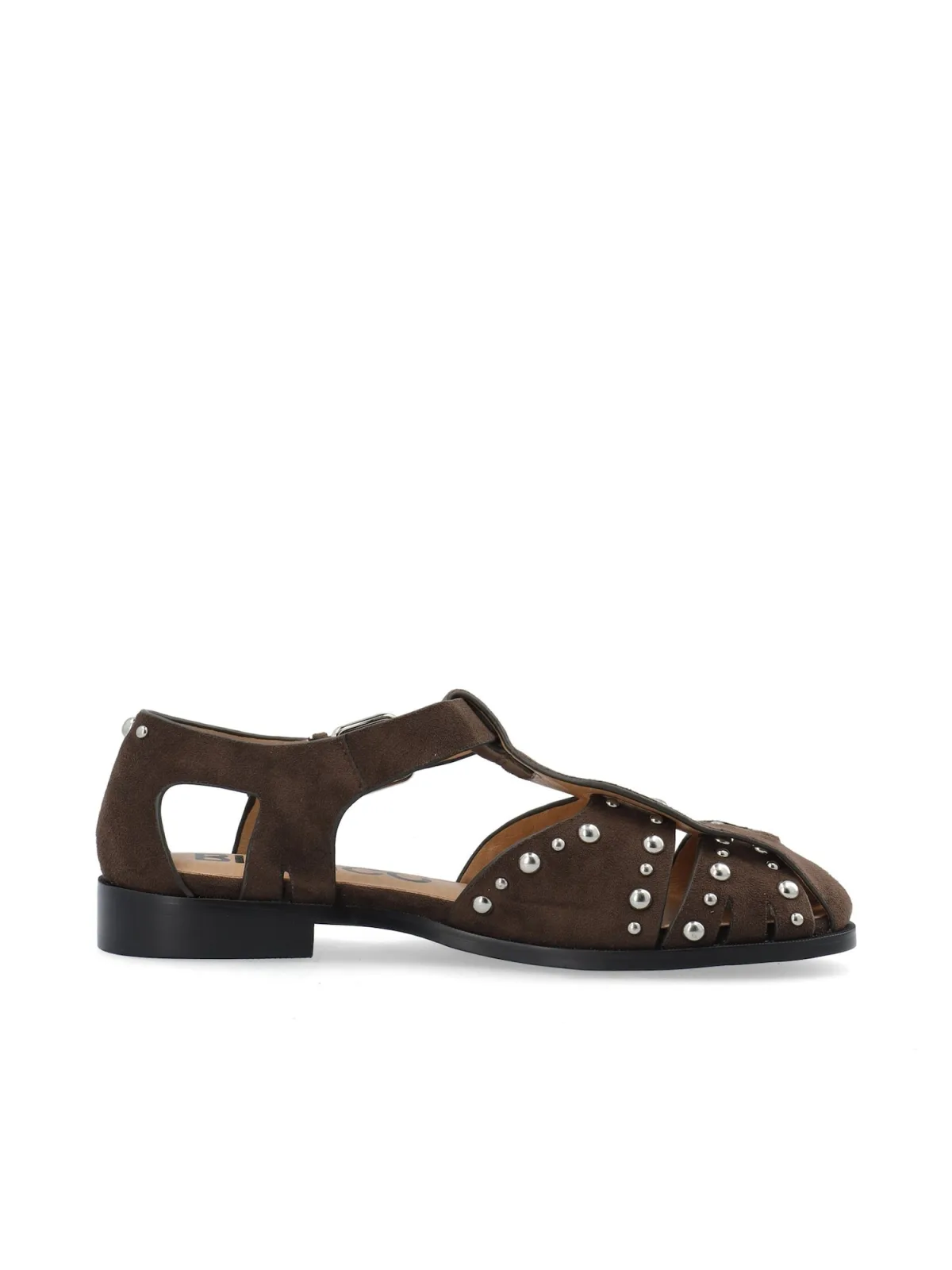 Design: Gevoerde zoom/rand, Verstelbare riemen, Versterkte hak; Type sluiting: Gesp; Materiaal: Imitatieleder; Motief: Effen; Materiaal: Imitatieleer; Schoenneus: Ronde neus; Extra's: Studs, Op staal naden; Hakhoogte: Platte hak (0-3 cm)