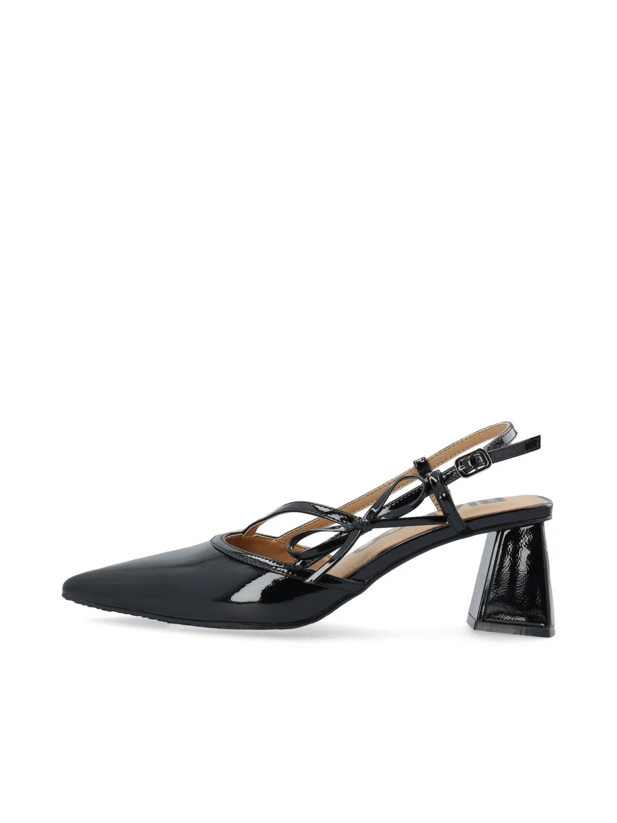 Design: Pumps met enkelbandje; Type sluiting: Riemsluiting; Type hak: Blokhak; Materiaal: Imitatieleder; Motief: Effen; Materiaal: Lak; Schoenneus: Spitse neus; Extra's: Glanzend; Hakhoogte: Middelhoge hak (3-7 cm)