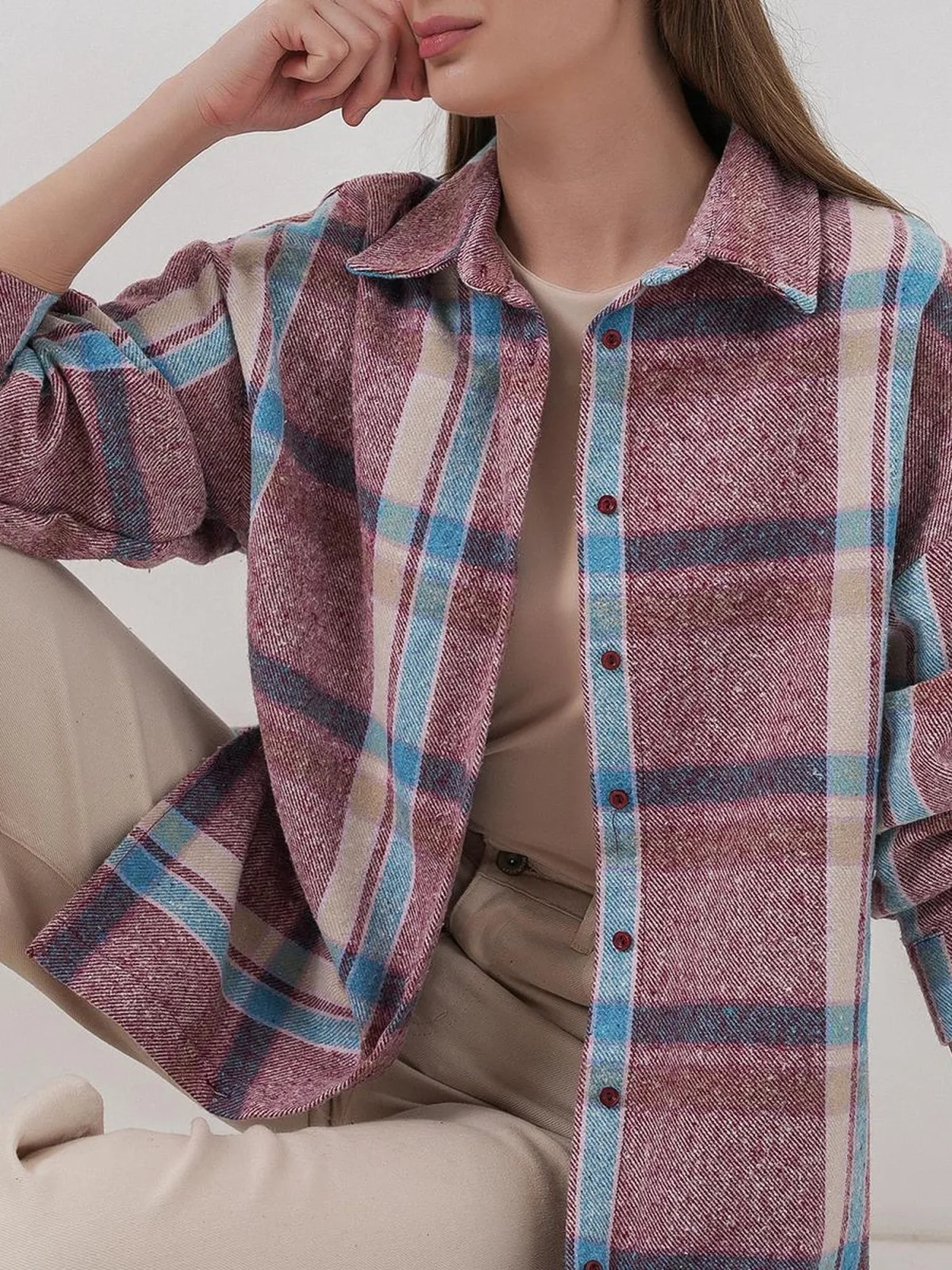 Blouse type: Klassieke blouse; Design: Gevoerde zoom/rand; Type sluiting: Knoopsluiting; Materiaal: Flanel; Motief: Geruit; Kraag: Kentkraag; Extra's: All-over patroon; Pasvorm: Losse pasvorm; Armlengte: Lange mouw; Lengte: Normale lengte