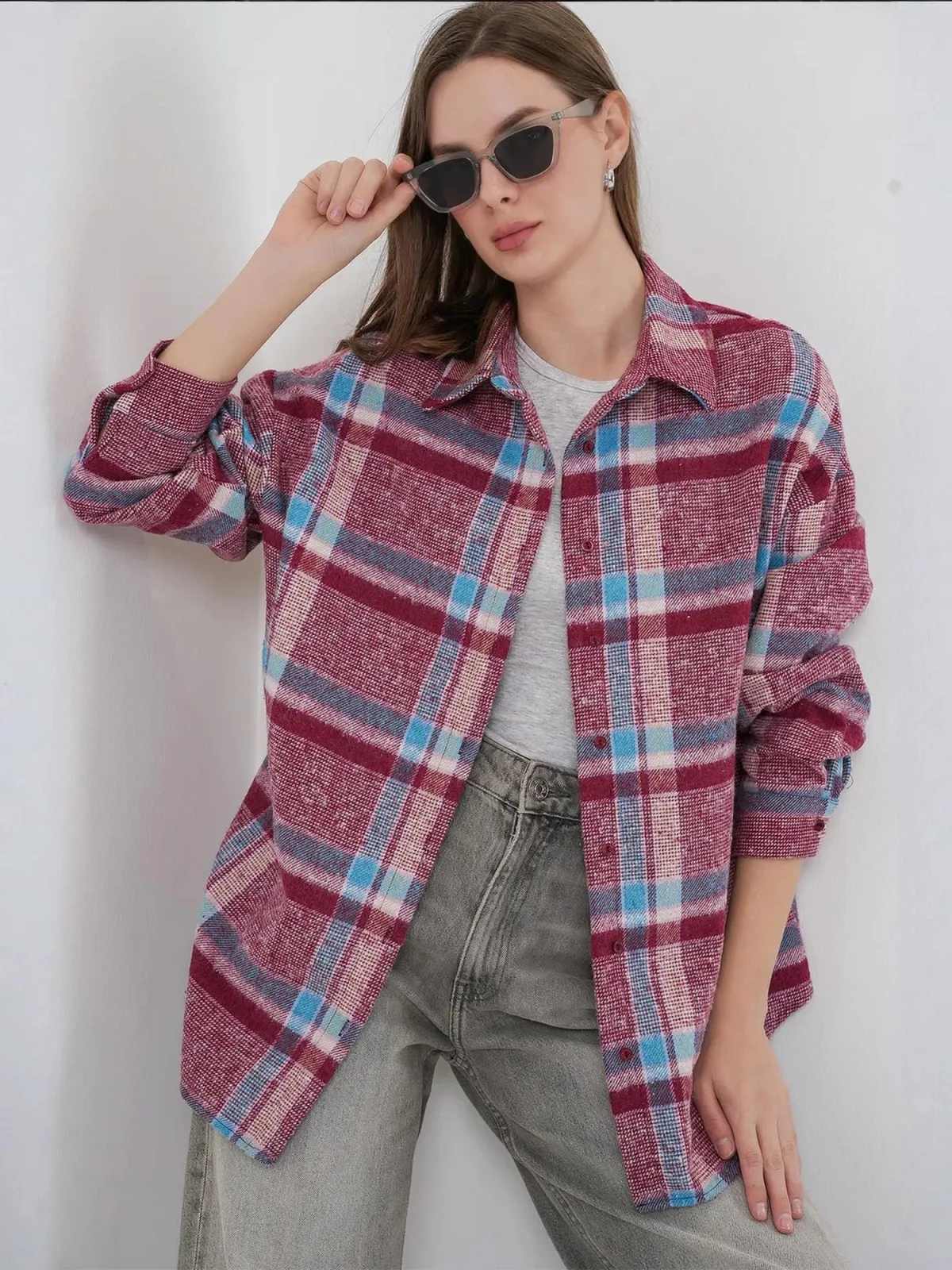 Blouse type: Klassieke blouse; Design: Knop placket; Type sluiting: Knoopsluiting; Materiaal: Flanel; Motief: Geruit; Kraag: Kentkraag; Extra's: All-over patroon; Pasvorm: Wijde pasvorm; Armlengte: Lange mouw; Lengte: Normale lengte