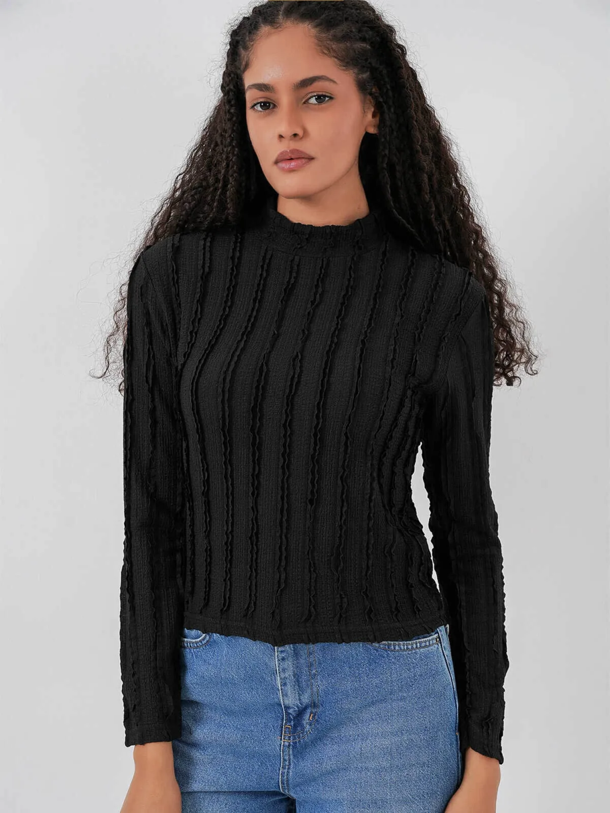 Blouse type: Blouseshirt; Design: Gevoerde zoom/rand, Rechte zoom; Motief: Effen; Extra's: Op staal naden, Met textuur; Pasvorm: Slanke pasvorm; Armlengte: Lange mouw; Lengte: Normale lengte