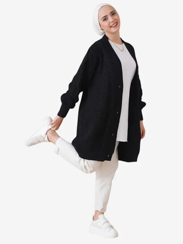 Design: Geribd ceintuurtje, Vlecht brei; Type sluiting: Knoopsluiting; Materiaal: Knitwear; Halstype: V-hals; Motief: Effen; Extra's: Fully fashioned; Pasvorm: Losse pasvorm; Armlengte: Lange mouw; Lengte: Lange pasvorm