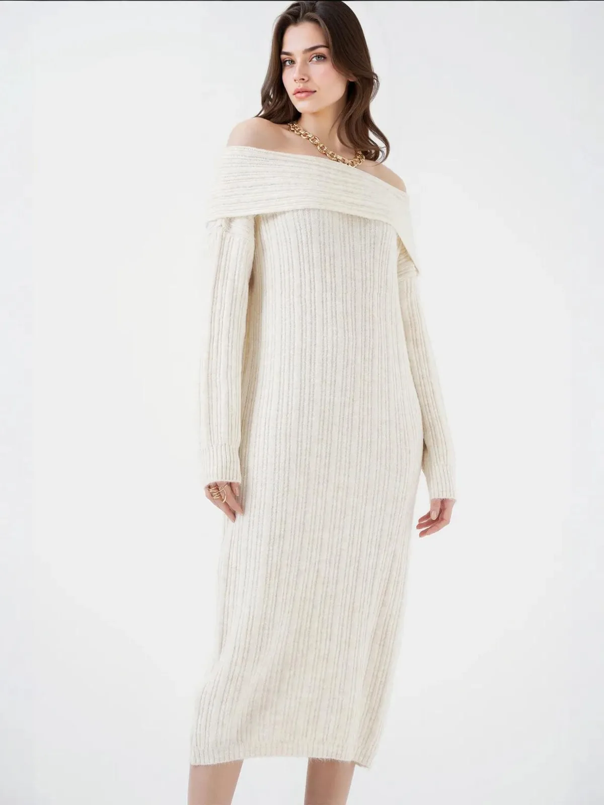 Design: Geribd ceintuurtje, Strapless/off-shoulder; Materiaal: Knitwear; Halstype: Carmen hals; Motief: Effen; Extra's: Fully fashioned, Met textuur; Lengte: 3/4 lengte; Snit: Recht; Pasvorm: Normale pasvorm; Armlengte: Lange mouw