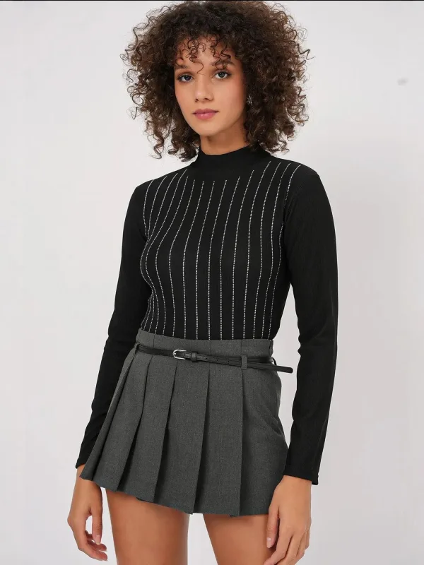 Design: Geribbelde kraag; Materiaal: Jersey; Halstype: Opstaande kraag; Motief: Effen; Details: Sierstenen; Extra's: Met halfedelstenen; Pasvorm: Slanke pasvorm; Armlengte: Lange mouw; Lengte: Normale lengte