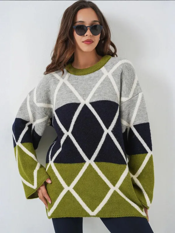 Bigdart Trui navy / lichtgrijs / olijfgroen / wit