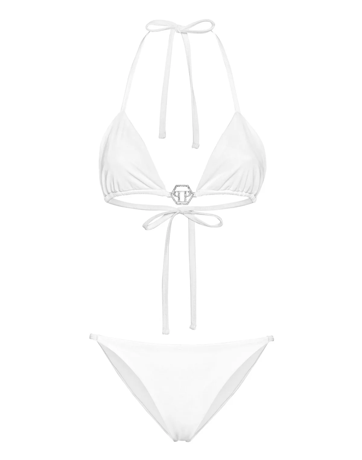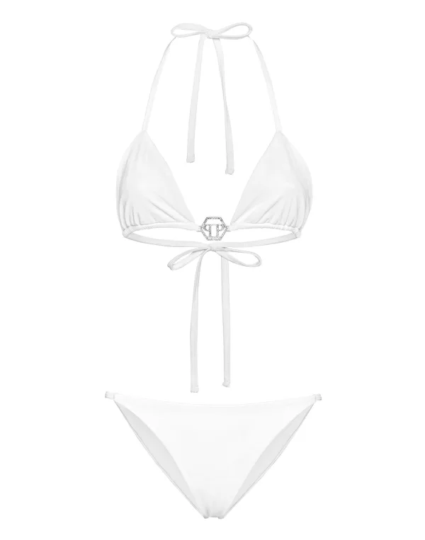 Ontdek glamour met deze effen gekleurde lycra bikini. Lycra Driehoekig topje met strikbandjes Juweel PP Hexagon in nek Strikbandje Tweevoudig gestikt
