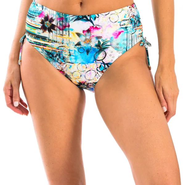 Hoge bikinislip voor dames. Een bikinipanty met hoge taille en bandjes aan de zijkanten waarmee je de hoogte kunt aanpassen en die kunnen worden afgeknipt. Volledig gevoerd en met een flatterende oosterse bloemenprint in blauwtinten. Kleur Blauw-bloemenprint Avant-gardistische stof met een hoog vormend vermogen, hoge weerstand tegen chloor, zonnebrandcrèmes en oliën en uitstekende vochtabsorberende eigenschappen. Samenstelling: Buitenkant: 80% Polyamide, 20% Elastaan; Binnenkant: 84% Polyester, 16% Elastaan. Handwas. Niet strijken of bleken. Niet in de droger. Niet draaien om uit te lekken. Samenstelling: Buitenkant: 80% Polyamide, 20% Elastaan; Binnenkant: 84% Polyester, 16% Elastaan. Onderhoud: Handwas. Niet strijken of bleken. Niet in de droger. Niet draaien om uit te lekken.