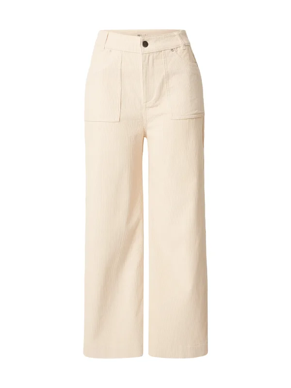 Design: Opgezette zakken, Achterzak; Type sluiting: Ritssluiting; Materiaal: Corduroy; Motief: Effen; Details: Borduursels; Extra's: Met textuur, Riemlussen; Lengte: 7/8 lengte; Pasvorm: Wide leg; Taillehoogte: Mid waist