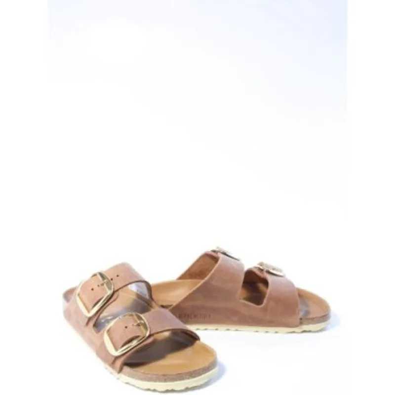 Merk: Birkenstock, Model: Slippers, Materiaal: Leer, Kleur: Cognac