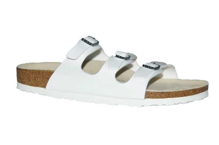 Artikel Florida BS 00073 in de kleur weiß shop je gemakkelijk en snel op onze webshop.Deze slippers hebben een uniek voetbed van kurk met natuur leer bekleed. Te besteel in 2 wijdte maten ( Smal & Regular = Breed ) Bekijk de gehele collectie van Birkenstock online