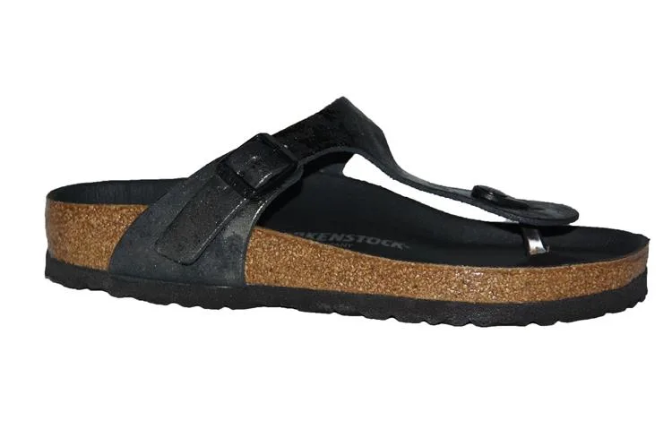 - Bij bol.com kun je Birkenstock Gizeh Dames Slippers Metallic BlackSilver Regularfit Zwart Suede kopen voor slechts €89,95 , dat is 10% goedkoper dan bij Topshoe (€100,00).