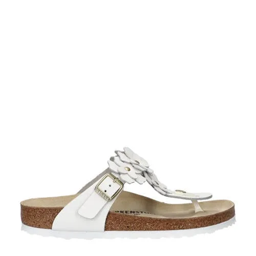 Birkenstock Gizeh Flower leren teenslippers wit
