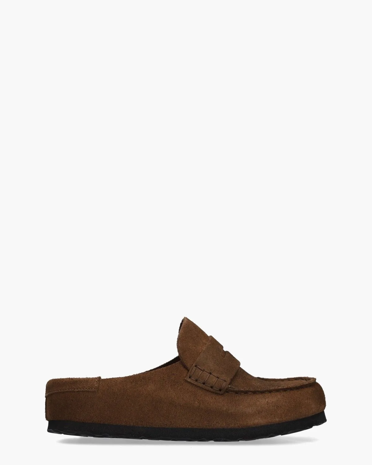De Birkenstock Naples Wrapped 1031701 damesslippers brengen het beste van twee werelden samen: het gemak van een slipper en de uitstraling van een loafer. Het donkerbruine suède bovenwerk geeft het ontwerp een luxe en natuurlijke look. Dankzij het anatomisch gevormde kurk latex voetbed met een suède laagje geniet je van comfortabele