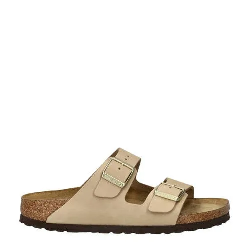 Deze slipper voor dames van Birkenstock heeft een suède buitenkant en een leren voering. De Arizona Nubuck biedt comfort met een platte zool en verstelbare gespsluiting. Perfect voor een ontspannen dagje uit.