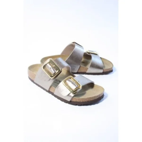 Merk: Birkenstock, Model: Slippers, Materiaal: Metallic, Kleur: Taupe