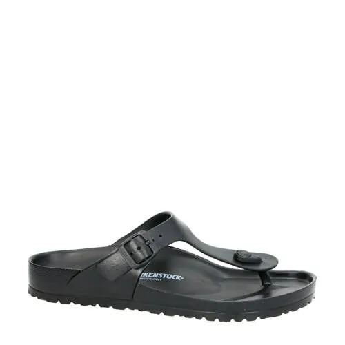 Birkenstock Eva Gizeh heren teenslipper. Badslippers zijn naast comfortabel ook weer helemaal terug als mode item! Zo wandel je stijlvol richting het zwembad. Uitgevoerd in rubber en hierdoor waterbestendig. Voorzien van het welbekende Birkenstock voetbed. Licht van gewicht dus handig om mee te nemen op vakantie.