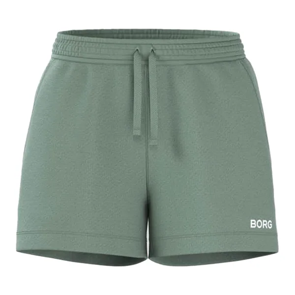 De Björn Borg Essential 5 Sweatshorts voor dames is gemaakt van een mix van katoen en gerecycled polyester in zacht fleece dat aan de binnenkant is geborsteld. De shorts hebben een normale pasvorm, voorzien van twee steekzakken en een achterzak, geribde manchetten en taille. Met elastische tailleband voor ondersteuning met een rond trekkoord aan de binnenkant voor eenvoudig verstellen.