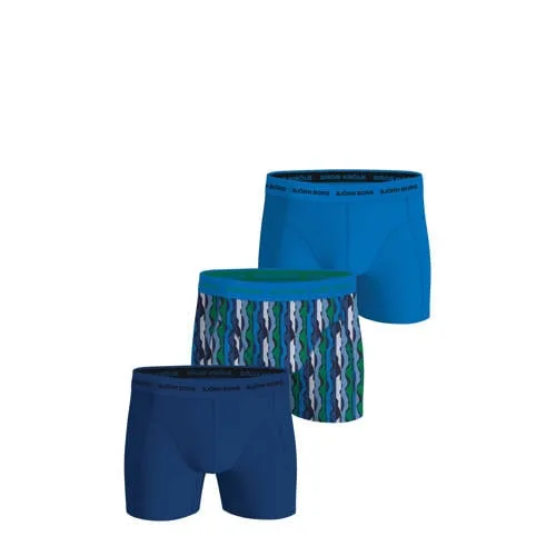 Vernieuw je ondergoedlade met deze set Björn Borg heren boxershorts in blauw. De verpakking bevat 3 boxershorts in standaardmaten, allemaal met een all over print. Ideaal als dagelijkse basis onder je outfit, met de herkenbare Björn Borg uitstraling en een pasvorm die prettig aansluit op het lichaam.Zachte stof met fijne stretch Set van 3: praktische multipack met drie boxershorts in verschillende blauwe dessins Gemaakt van 95% katoen/5% elastaan voor een zachte touch met comfortabele stretch All over print zorgt voor een moderne, verzorgde look Elastische tailleband voor een stevige, maar niet knellende aansluiting Machinewas voor eenvoudig onderhoud Niet drogen in de droogtrommel, zo blijft de stof langer mooi Hygiënevoorschrift: ondergoed passen over je eigen ondergoedComfortabele basis voor elke dagDeze boxershorts zijn ontworpen als betrouwbare basis voor elke dag. De mix van katoen en elastaan geeft voldoende bewegingsvrijheid, terwijl de aansluitende pasvorm netjes onder je kleding blijft zitten. De blauwe kleur en prints geven een fris en verzorgd geheel, of je nu naar je werk gaat of een ontspannen dag thuis hebt.Björn Borg kwaliteitBjörn Borg staat bekend om ondergoed met aandacht voor pasvorm en detail. De herkenbare stijl en het betrouwbare draaggevoel maken deze boxershorts tot een vaste waarde in je garderobe. Je kiest voor een merk dat sportieve invloeden combineert met een moderne, dagelijkse look.Een praktische en stijlvolle ondergoedset waar je elke dag op kunt rekenen.