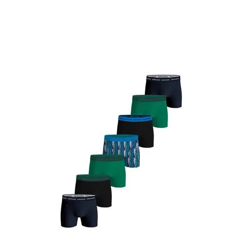 Voor elke dag van de week een frisse start met deze set Björn Borg heren boxershorts. Dit 7-pack biedt je een complete basisvoorraad in één keer, met boxers in groen, zwart en blauw en een stoere all over print. De aangesloten pasvorm en de zachte stof zorgen ervoor dat je je de hele dag vrij kunt bewegen, of je nu onderweg bent naar je werk, de sportschool of een relaxte dag thuis hebt.Zeven boxers, één comfortabele basis Set van 7: voor elke dag van de week een schone boxershort Kleurenmix: groen, zwart en blauw met all over print Gemaakt van 95% katoen / 5% elastaan voor een zachte, soepele touch Aansluitende pasvorm die goed blijft zitten onder je kleding Geschikt voor machinewas, handig voor dagelijks gebruik Niet drogen in de droogtrommel om de stof mooi te houden Hygiëne voorschrift: i.v.m. hygiëne dient ondergoed gepast te worden over je eigen ondergoedComfortabele keuze voor elke dagDit multipack is ideaal als je graag in één keer klaar bent met je ondergoedvoorraad. De mix van kleuren en prints geeft je elke dag een andere look, terwijl de katoenen stof met elastaan prettig aanvoelt op de huid en soepel meebeweegt.Björn Borg: sportieve stijl en betrouwbaarheidBjörn Borg staat bekend om ondergoed met een sportieve uitstraling, comfortabele pasvormen en aandacht voor detail. Met deze set kies je voor een praktische, betrouwbare basis die past bij een actieve en moderne levensstijl.Een complete, comfortabele ondergoedset waar je elke dag op kunt rekenen.