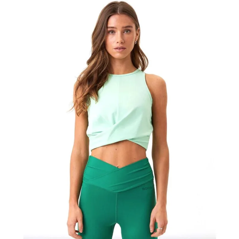 Zijdezacht en ruimvallend tanktop van Tencel™ Lyocell. Bjorn Borg Dames Borg Cross Tank 10001061-GN079 85% Polyamide / 15% Elastane • Sneldrogend • Ademend materiaal • Gemaakt van recyclede materialen • Zachte naden • Geschikt om sporten