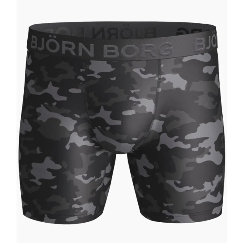 Bjorn Borg Heren Sport Boxer 1P - Performance - 9999-1135-90651 De Björn Borg Tonal Camo Performance shorts is uitgevoerd met een stealth-achtige camoprint. Dit slim-fit high-performance ondergoed zit als gegoten en is gemaakt van stretchpolyamide met vochtafvoerend Hydro Pro-materiaal dat je heerlijk droog en comfortabel houdt. De short is afgewerkt met gladde naden en elastiek om schuren te voorkomen, en een elastische logotailleband. * Performance ondergoed van Hydro Pro-materiaal dat je droog en comfortabel houdt. * Vlakke, niet-schurende naden * 3,8 cm brede elastische tailleband * Ideaal om in te sporten * Materiaal: 90% Polyester 10% Elastaan
