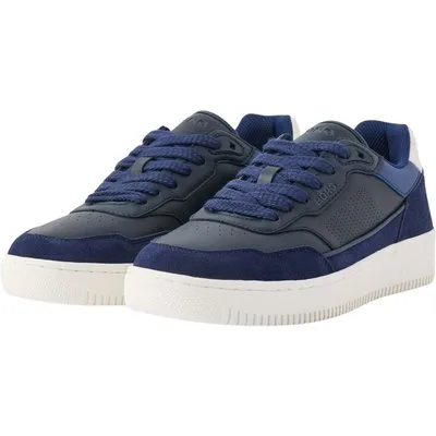 Specificaties: * Pasvorm: normale pasvorm; vetersluiting * Bovenwerk: synthetisch leer – suède * Binnenzool: gewatteerde uitneembare binnenzool * Buitenzool: hogere massief rubberen zool * Kleur: marine - beige * Materiaal: 52% polyurethaan – 48% rundleer suède
