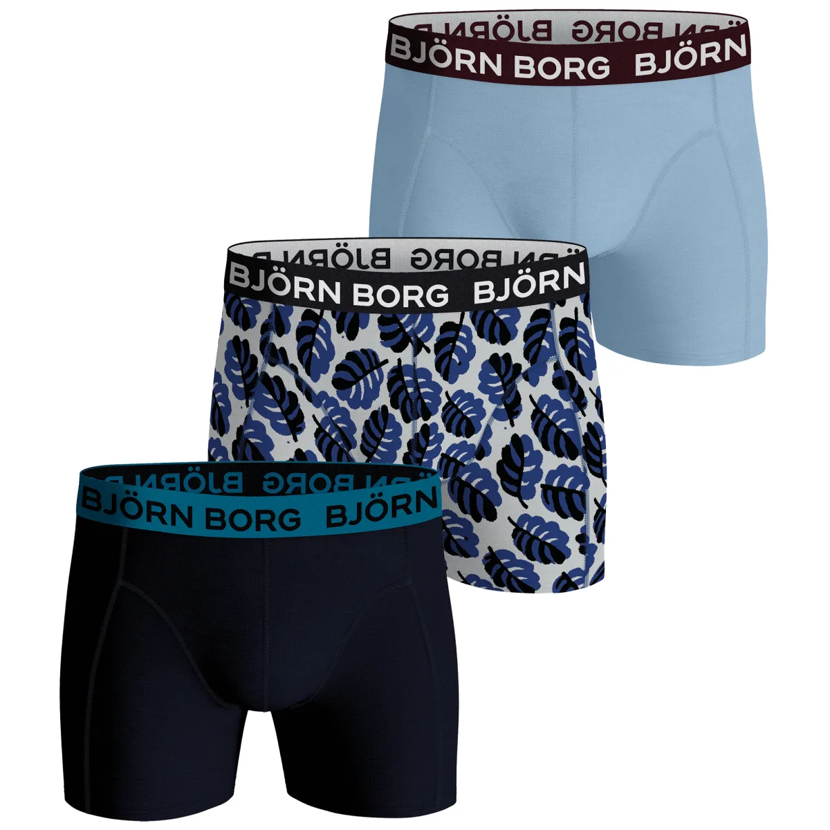 Heren 3-Pack Boxers van het merk Bjorn Borg. Merk: Bjorn BorgModelnaam: 3-PackCategorie: heren boxersMaterialen: katoen, elastaanKleur: navy, blauw, print