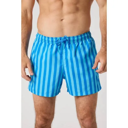 Deze Björn Borg zwemshort voor heren combineert een sportieve look met praktische details. De short is uitgevoerd in blauw/lichtblauw met een moderne streepprint, ideaal voor een dag aan het strand of een middag in het zwembad. De elastische tailleband met koord zorgt ervoor dat de short goed blijft zitten, of je nu zwemt, speelt met de kids of relaxed op je handdoek ligt.Praktische details voor in en om het water Elastische tailleband met koord voor een verstelbare en stevige pasvorm Blauw/lichtblauwe streepprint voor een sportieve, frisse uitstraling Mesh voering aan de binnenkant voor extra ondersteuning en comfort Zijzakken voor kleine essentials zoals een sleutel of muntgeld Geschikt als zwembroek voor heren, in standaardmaten verkrijgbaar Onderhoudsvriendelijk: handwas, niet strijken en niet in de droogtrommel drogen Hygiënetip: pas badkleding altijd over je eigen ondergoedComfortabel in bewegingDe lichte stof en de mesh binnenbroek geven je een vrij gevoel tijdens het bewegen in het water. De short zit comfortabel tijdens het zwemmen en droogt weer snel wanneer je uit het water komt. Dankzij de zijzakken en de instelbare tailleband is deze zwemshort ook praktisch als je onderweg bent naar het strand of het zwembad.Björn Borg: sportieve stijl met aandacht voor detailBjörn Borg staat bekend om sportieve ontwerpen die comfort en een moderne uitstraling combineren. De zwemkleding is ontworpen met oog voor detail, zodat je je zeker voelt in en rond het water. Met deze zwemshort kies je voor een betrouwbaar merk dat al jaren populair is bij liefhebbers van een actieve, verzorgde stijl.Een praktische zwemshort met doordachte details.