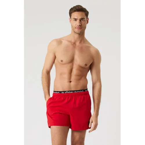 Deze rode Björn Borg zwemshort is een fijne basic voor zwemdagen aan zee, in het zwembad of op vakantie. De short heeft een effen kleur en een moderne, iets kortere lengte die veel bewegingsvrijheid geeft. De elastische tailleband met aantrekkoord zorgt ervoor dat de short goed blijft zitten, of je nu baantjes trekt of ontspant op je handdoek.Praktische details voor in en om het water Elastische tailleband met koord voor een persoonlijke pasvorm Gemaakt van een lichte, sneldrogende stof Ingewerkte mesh binnenbroek voor extra ondersteuning en comfort Effen rode kleur, makkelijk te combineren met T-shirts en slippers Geschikt voor standaardmaten heren Handwas geadviseerd, niet strijken en niet in de droogtrommel drogen Let op: i.v.m. hygiëne dient badkleding gepast te worden over je eigen ondergoedComfortabele zwemshort voor verschillende momentenDeze zwemshort is geschikt voor zowel een dag aan het strand als een bezoek aan het zwembad. De lichte stof voelt prettig aan op de huid en de mesh binnenbroek geeft een gerust gevoel bij bewegen en zwemmen. Na het zwemmen droogt de short snel, zodat je gemakkelijk door kunt met de rest van de dag.Sportieve stijl van Björn BorgBjörn Borg staat bekend om sportieve items met een moderne, cleane uitstraling. De ontwerpen zijn functioneel en comfortabel, met aandacht voor pasvorm en details. Deze zwemshort past daar goed bij en is een betrouwbare keuze voor wie houdt van actieve dagen in en rond het water.Een comfortabele en tijdloze basic voor jouw zwemgarderobe.