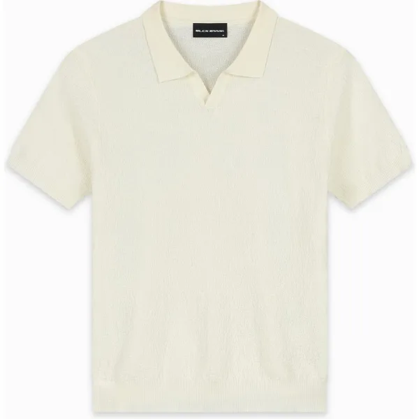 65% Viscose | 35% PolyesterNormale pasvormOpen kraag zonder knopenGestructureerde gebreide stofKorte mouwen met geribde manchetten